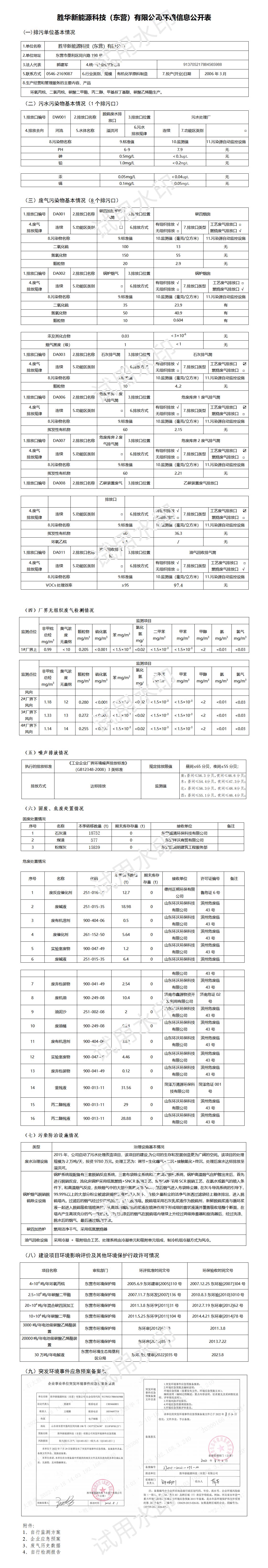 胜华新能源科技(东营)有限公司环境信息公开表(2023年第三季度)