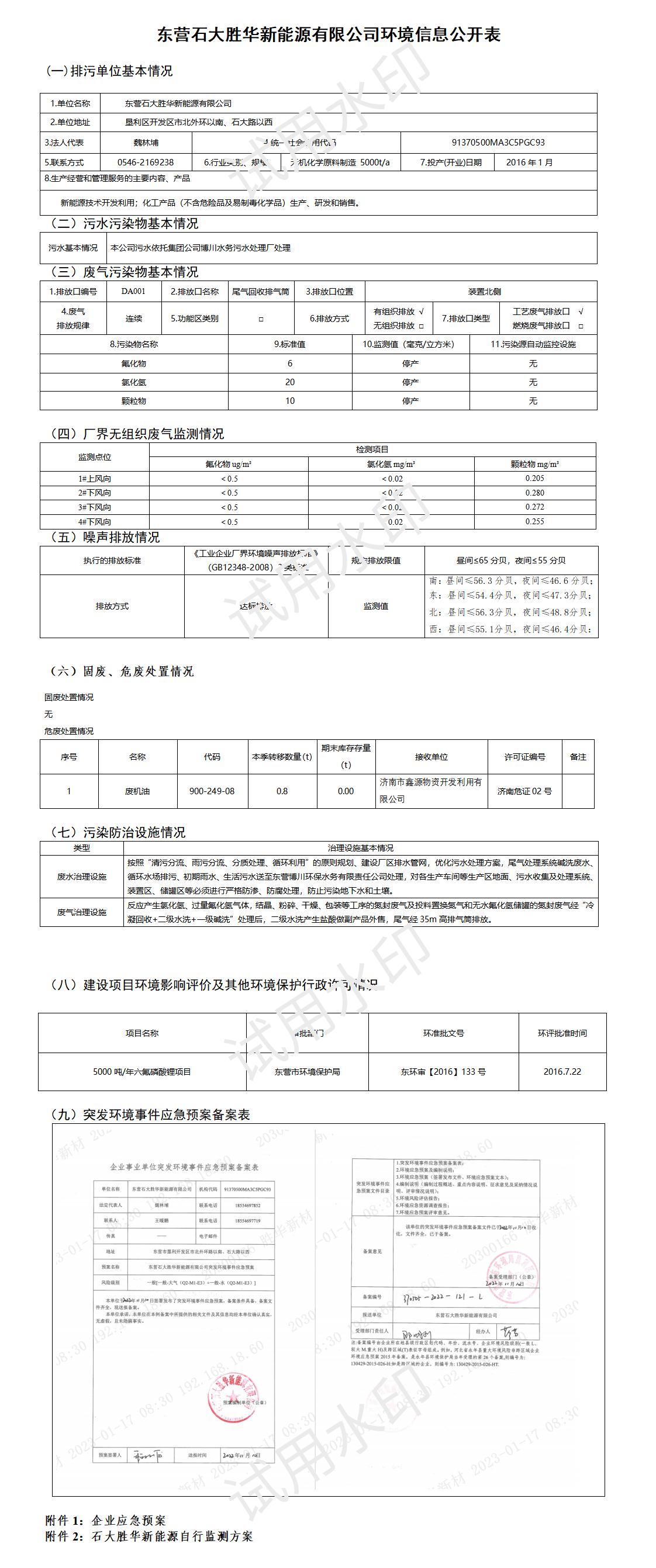 上一篇:东营石大胜华新材料有限公司环境信息公开表(2023年第三季度) 下一篇:胜华新能源科技(东营)有限公司环境信息公开表(2023年第三季度)
