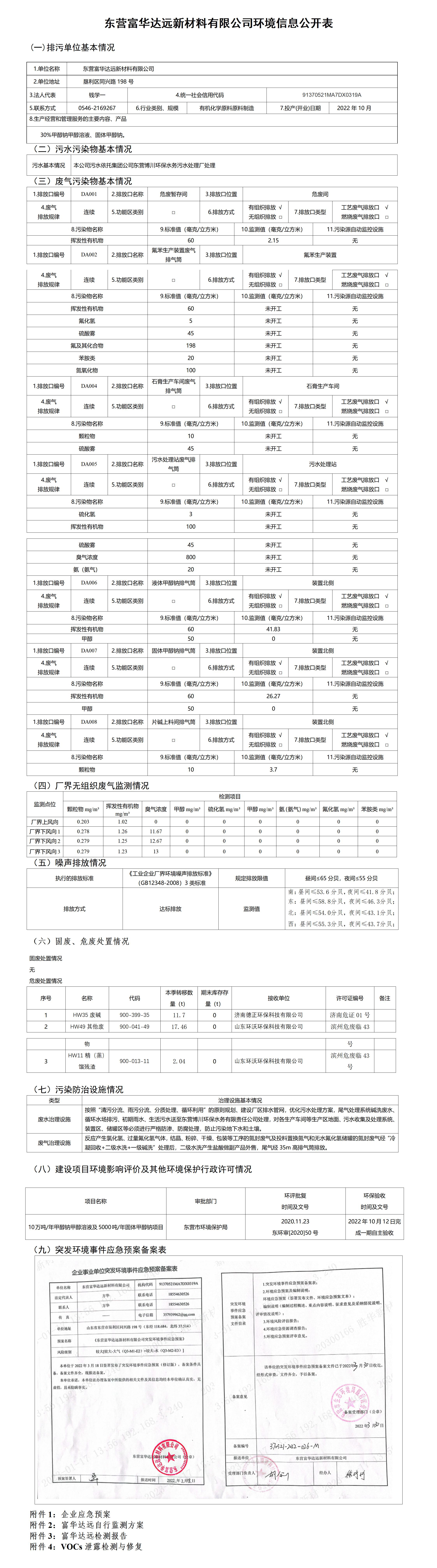 东营富华达远新材料有限公司环境信息公开表(2024年第一季度)
